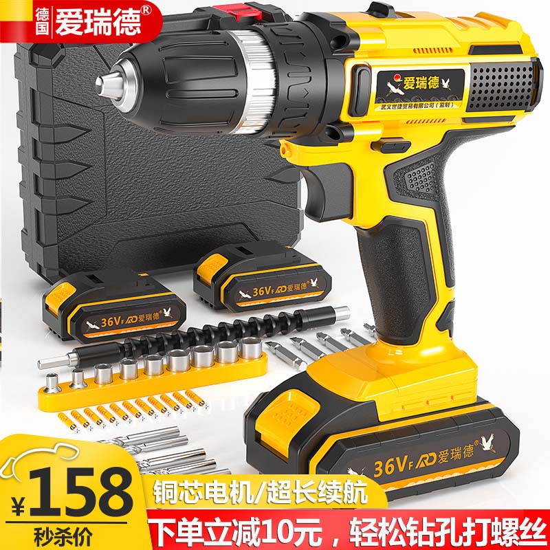 德国爱瑞德36VF锂电手电钻家用充电电钻多功能电动螺丝刀电起子 电动工具 36VF星耀升级款(双电池)