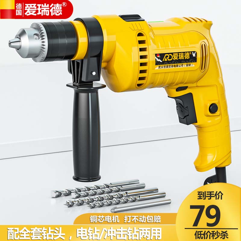 德国爱瑞德电钻家用 冲击钻多功能两用手电钻 维修工具组合套装 电动工具 星耀款冲击钻(配钻头套)
