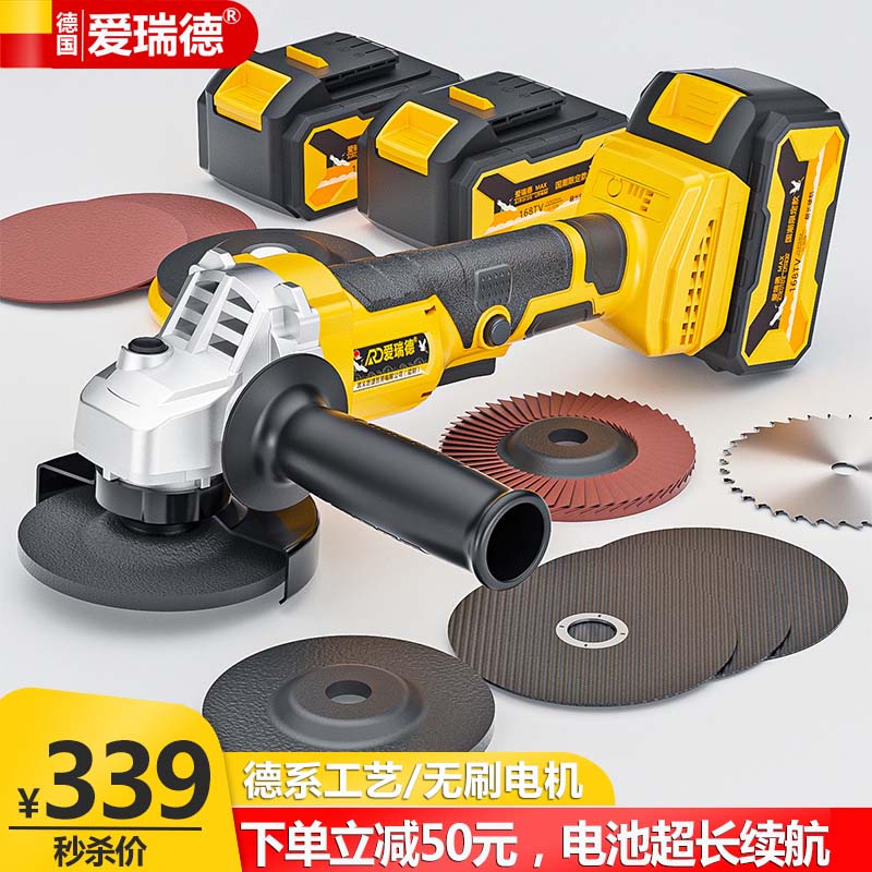 德国爱瑞德充电角磨机抛光机锂电打磨机多功能切割机角向磨光机 电动工具 168VF无刷星耀款(二电一充)