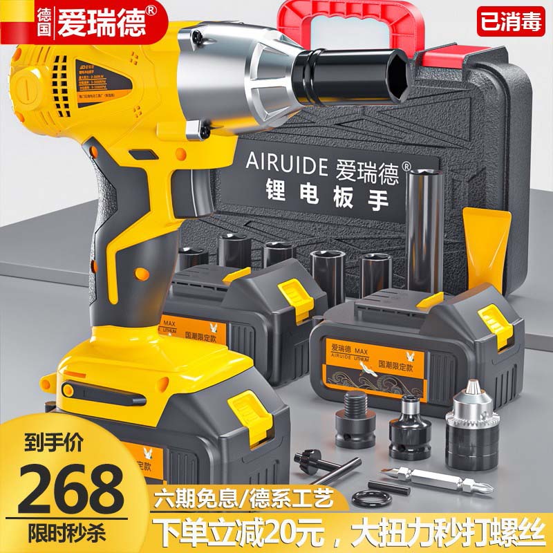 德国爱瑞德无刷电动扳手锂电冲击扳手架子工木工套筒风炮 电动工具 无刷工业级(二电一充)