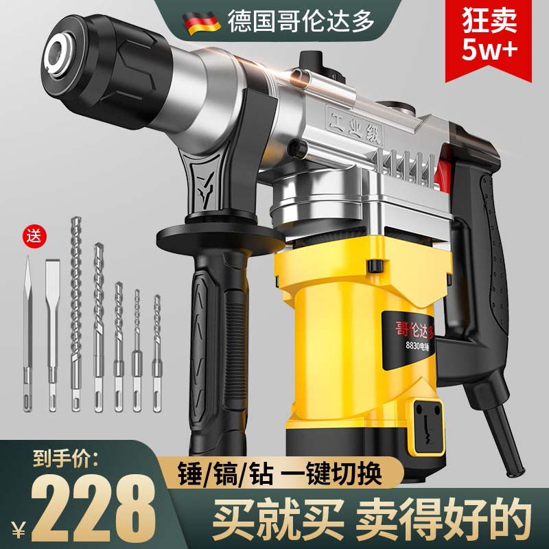 德国哥伦达多 电锤电镐两用 大功率冲击钻 电钻 工业级电动工具 混凝土克星 负载功率5880W强劲工程款电锤(实用套)