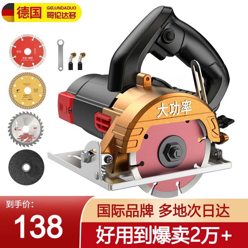 德国哥伦达多 云石机瓷砖多功能家用开槽机小型木材石材无齿手提电动斜齿锯45度切割机木工 尊选金色旗舰款+(豪华大礼包)
