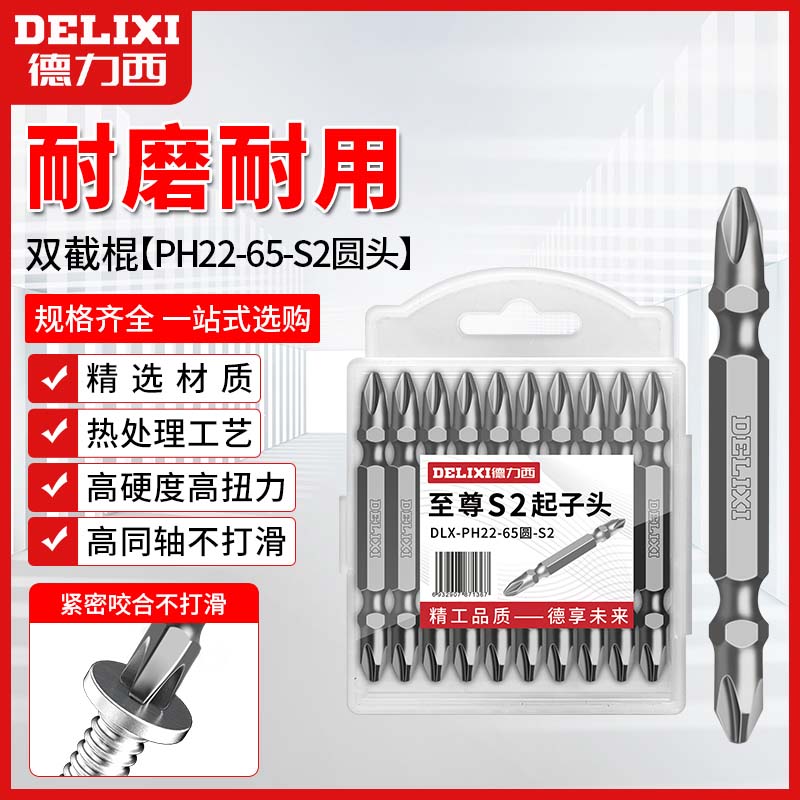 德力西(DELIXI)批头防滑十字强磁电动螺丝刀套装高硬度披头风批头手电钻【S2双截棍65MM小头 10支装】