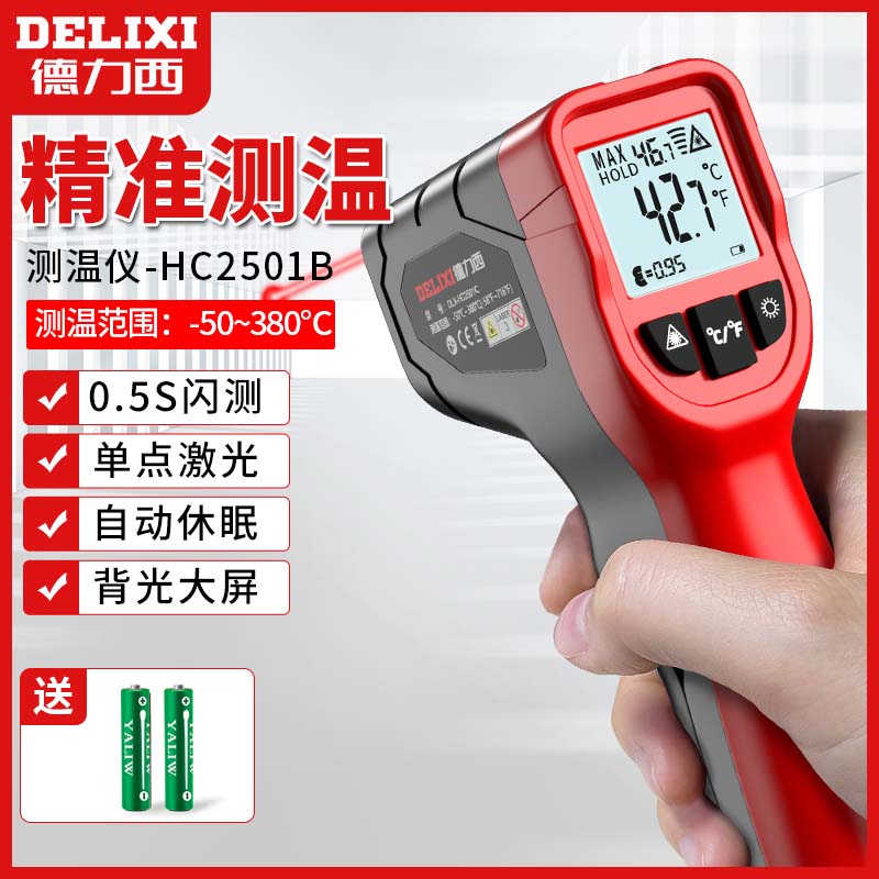 德力西(DELIXI)测温枪工业红外线测温仪高精度油温度计厨房烘培水温油温枪【-50~380℃】TN黑白屏