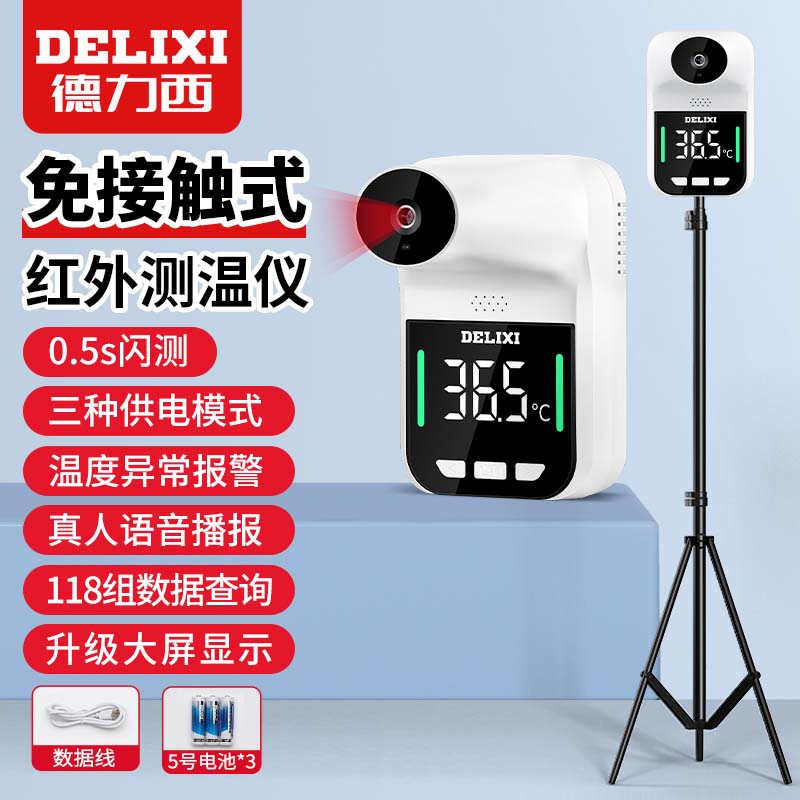 德力西(DELIXI)红外线测温仪立式全自动测温仪体温枪门口测温枪商用语音播报温度计一体机【豪华款】长支架