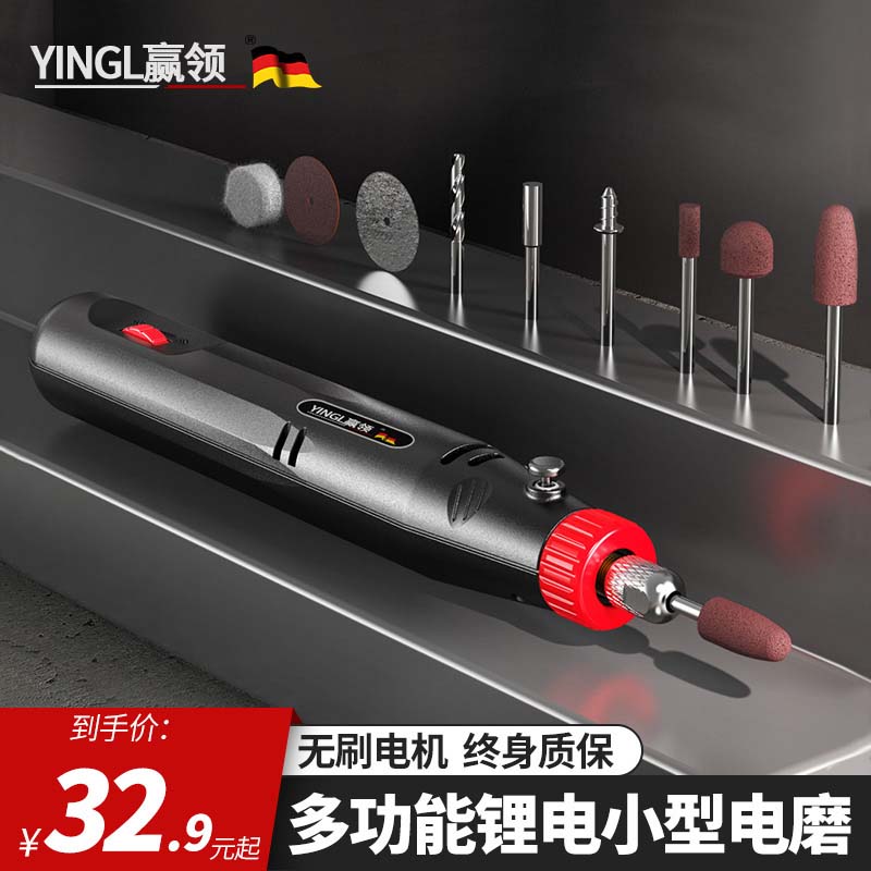【新款冲量】德国赢领 电磨机小型手持打磨机电动抛光玉石木雕刻工具切割打磨机神器迷你小电钻根雕文玩 【插电】35W加强款调速+25件套