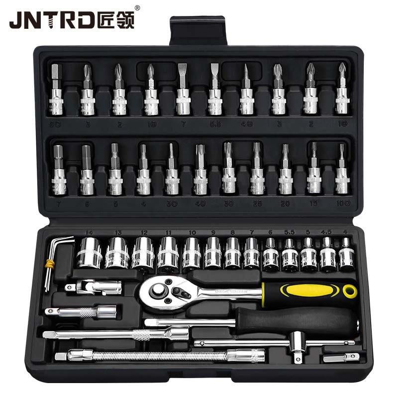 匠领JNTRD汽修工具套装家用套筒扳手小车棘轮扳手工具箱工具组合套装家用级46件JA1-X046