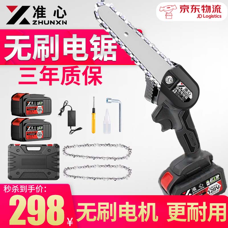 准心电锯家用充电式无刷电链锯伐木锯手持小型单手锂电锯往复锯便携式户外手电锯6寸链条锯果树修枝锯21V 6寸无刷电链锯+10节电芯锂电*2+全套配件