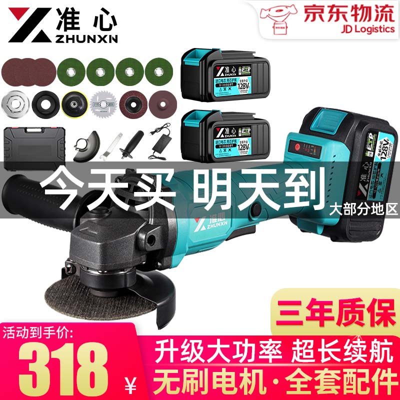 准心无刷锂电角磨机大功率多功能手砂轮切割机角向磨光机电动打磨机抛光机 家用手磨机金属充电式抛光机打磨 【旗舰款】2块10节2000锂电+豪华配件