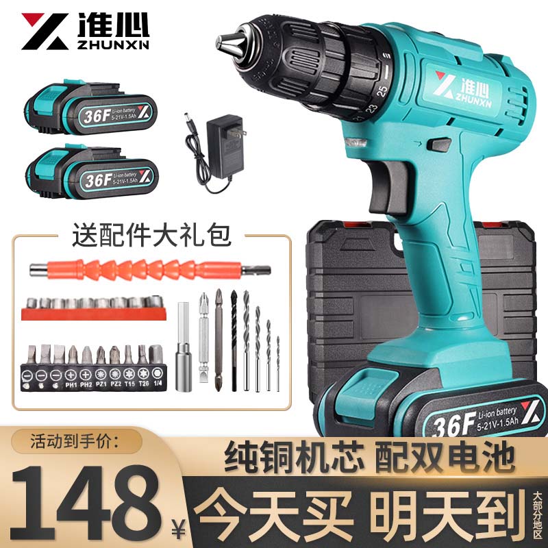 【专业款】准心手电钻锂电钻电动螺丝刀家用充电式手钻电转电起子电动五金工具箱套装打孔钻孔机电机钻头钻 【工程款】21V双速+2块电池+全套配件