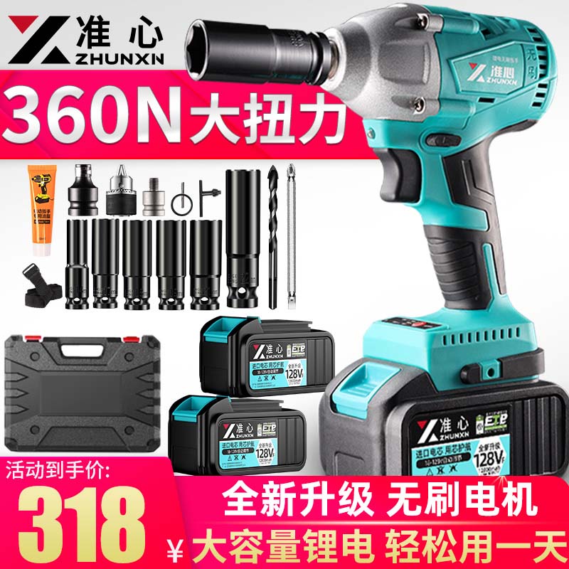 准心无刷锂电板手电动扳手大力矩充电冲击扳手架子工具套筒风炮汽修维修套装电动工具 【升级360N】21V无刷电扳手+双锂电+全套配件