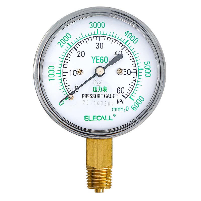 伊莱科(ELECALL)YE-60 0-60KPA 膜盒压力表微压表千帕表测燃气表压力