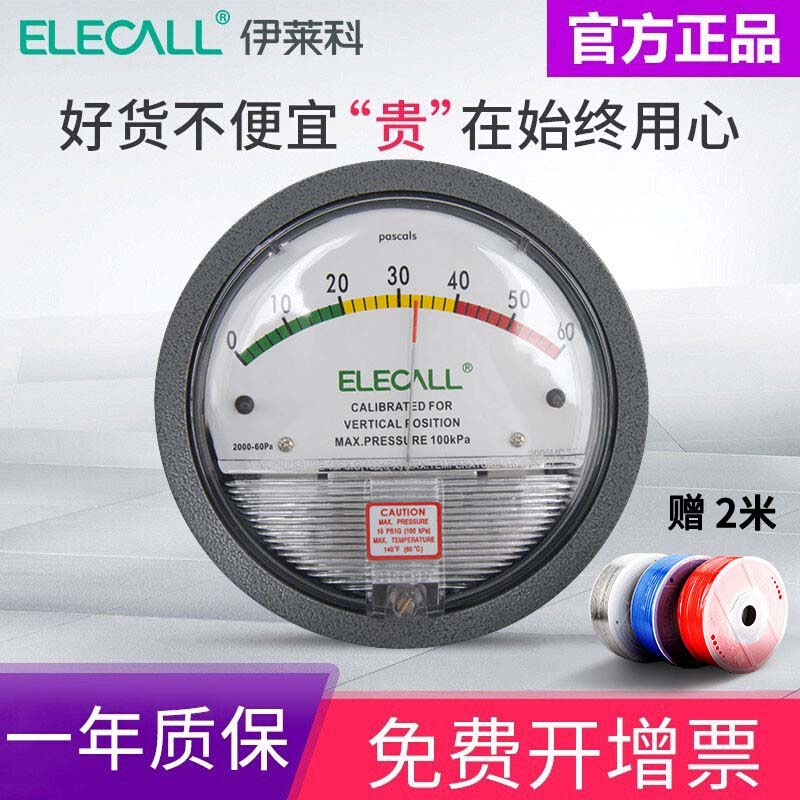 伊莱科 微压差表压差计 TE2000高精度正负微压差表0-60pa 圆形指针微压力表差压表气压表 正负30pa(工程款)
