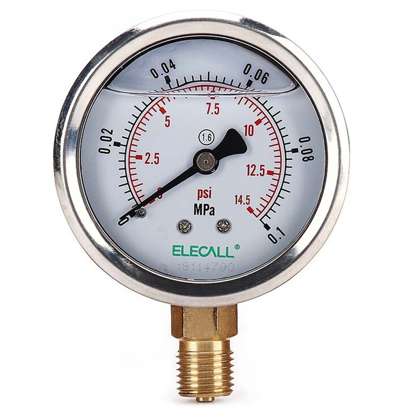 伊莱科(ELECALL)耐震压力表充油气压表液压表油压表自来水压力表径向真空YTN-60 0-0.1MPA