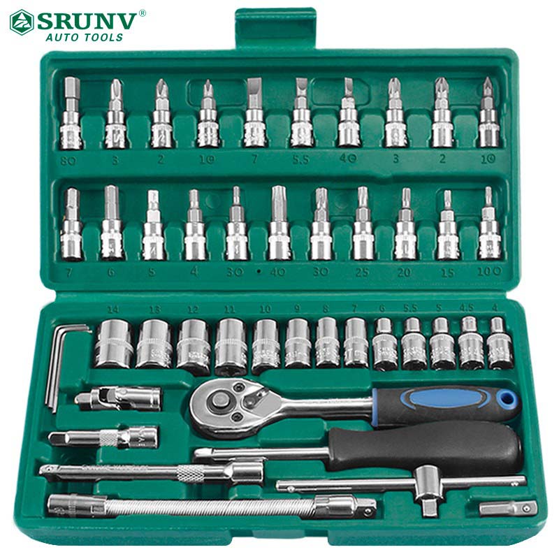 鑫瑞SRUNV汽修套筒扳手套装快速棘轮修车工具多功能工具套装46件小盒A1-X04609