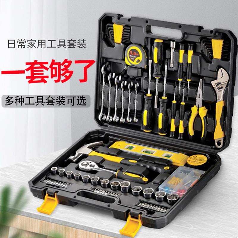 五金工具箱套装家用多功能家庭车载工具盒电工维修大全万能工具盒9件套家用工具套装