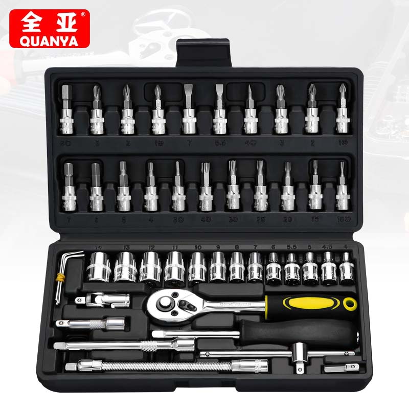 全亚汽修工具套装套筒套管棘轮扳手万能修车汽车维修修理工具箱组合多功能【随车常备高挡】;46件小飞工具套装