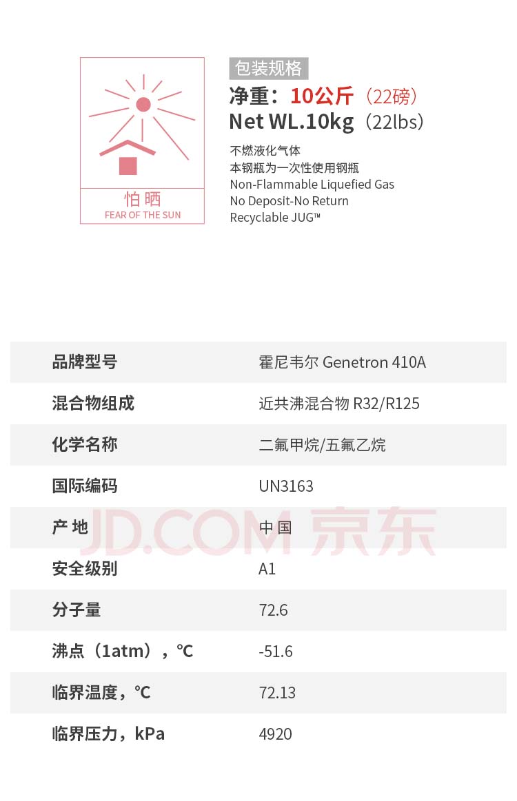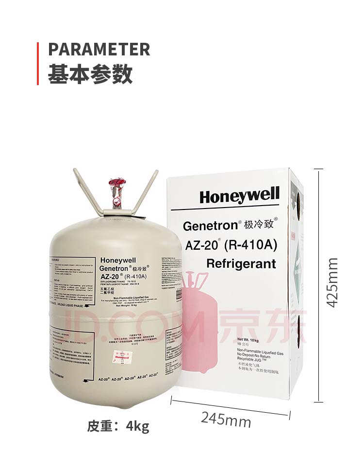 霍尼韦尔(Honeywell)R410A制冷剂氟利昂环保雪种冷媒净重10kg1瓶