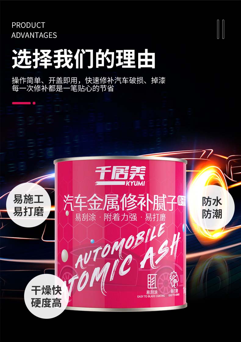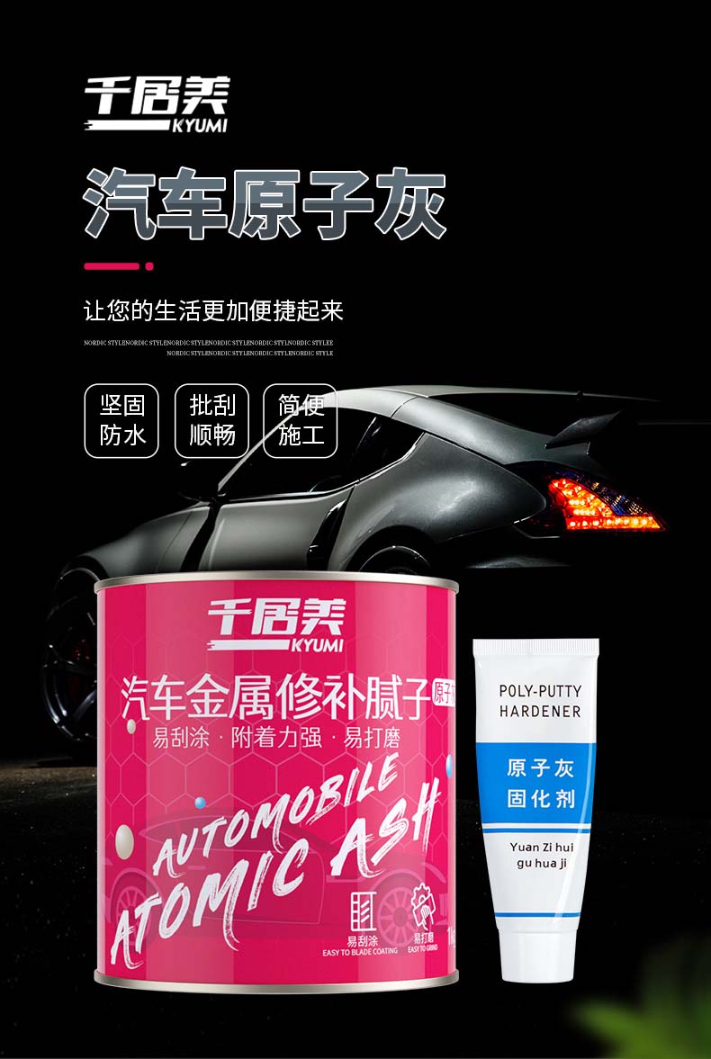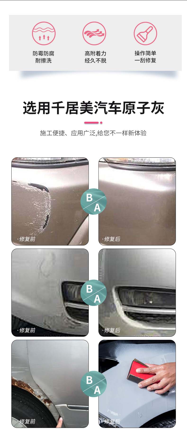 千居美 汽车金属原子灰 汽修腻子膏汽车底漆修补钣金喷涂补漆腻子地面修复膏 1KG