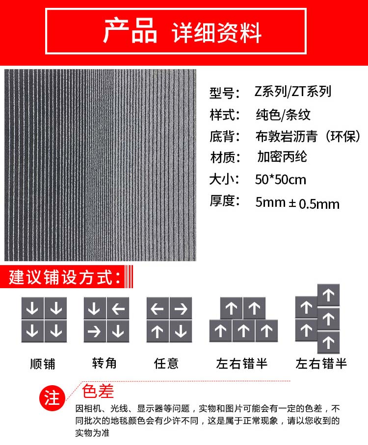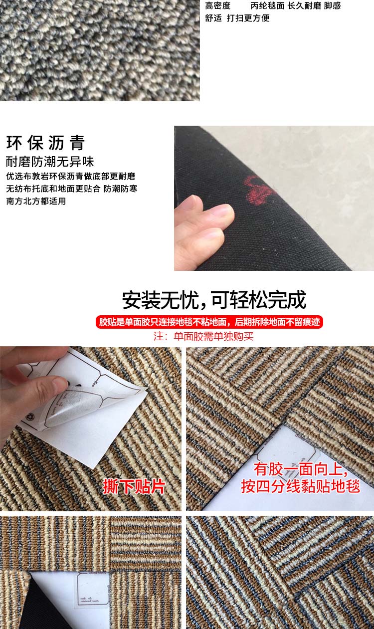 庄太太 深灰色50cm*50cm 拼接方块满铺耐脏商用办公地毯ZTT-9050