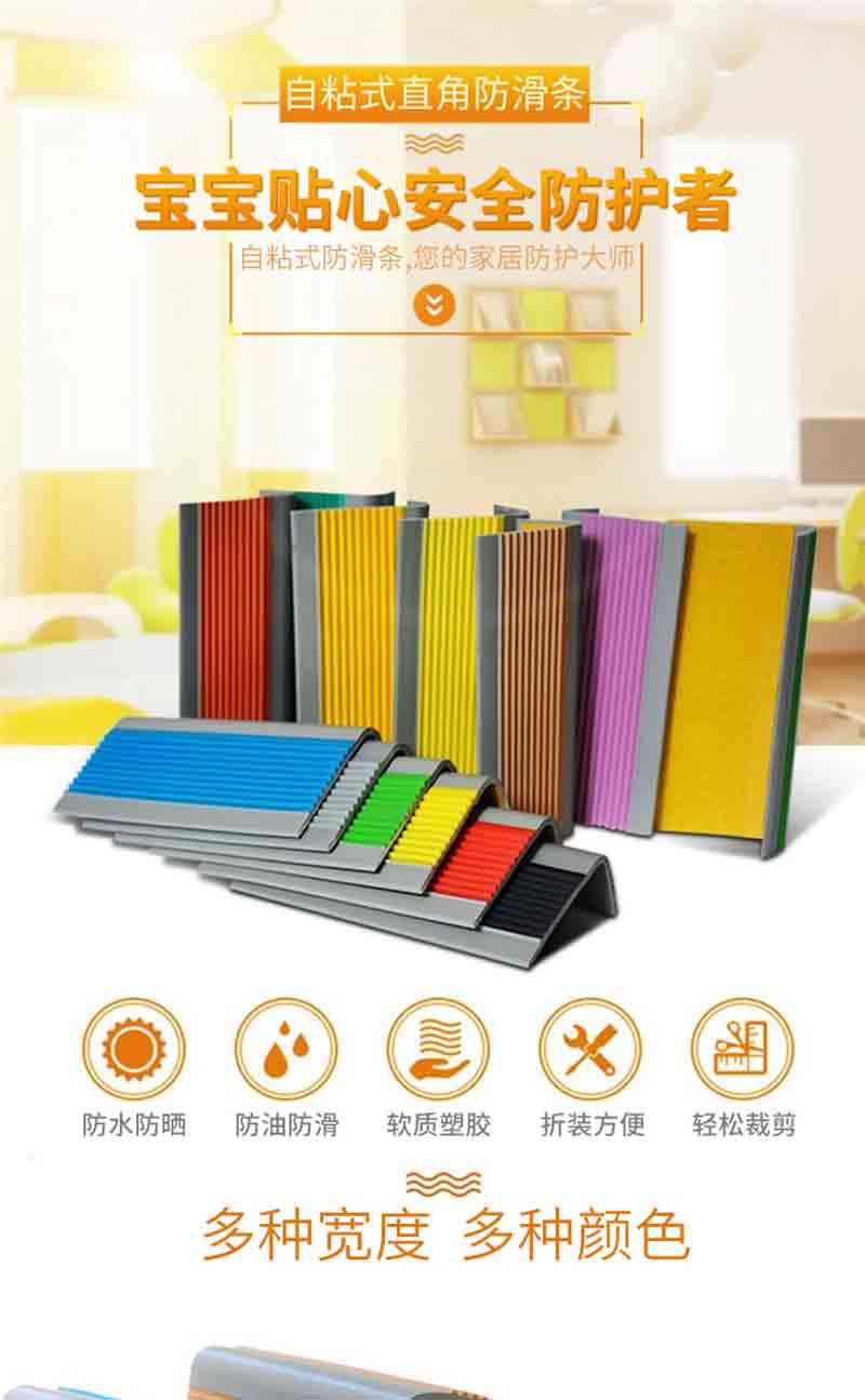 商品名称:平凡时光PVC自粘台阶垫学校楼梯防滑垫幼儿园台阶包边L型装饰垫HCF蓝灰色(1米)