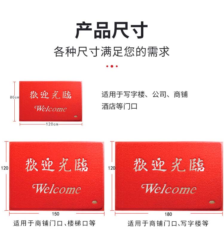 兰诗 FH-1074 地垫门口进门垫迎宾地毯防滑脚垫定制LOGO 120*180CM加厚款灰色欢迎光临