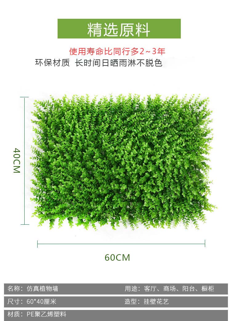 耐尔亚 仿真草坪植物墙室内花园装饰尤加利假草皮绿植背景墙草坪塑料花 中草