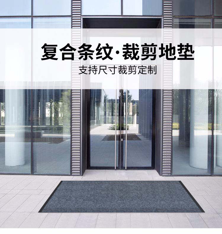 兰诗(LAUTEE)LS-5104 条纹复合地垫 酒店宾馆防滑蹭土吸水地垫 灰色1.8米宽*1.2米长