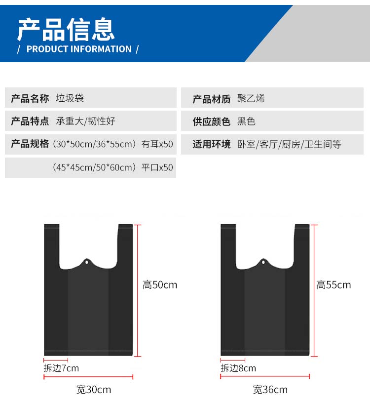 科力邦(Kelibang) 垃圾袋 一次性塑料袋小号36*55cm/50只装有耳 商用物业背心式垃圾袋 大客户专供 KB1002