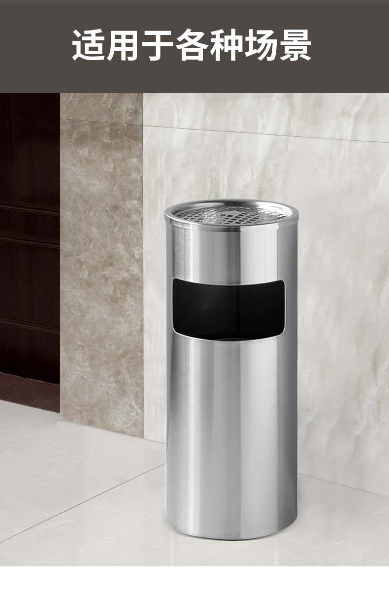 领象 不锈钢烟灰桶缸酒店大堂垃圾桶立式宾馆带内桶商场桶箱电梯口垃圾桶吸灰桶烟灰柱灭烟桶 银色 圆形
