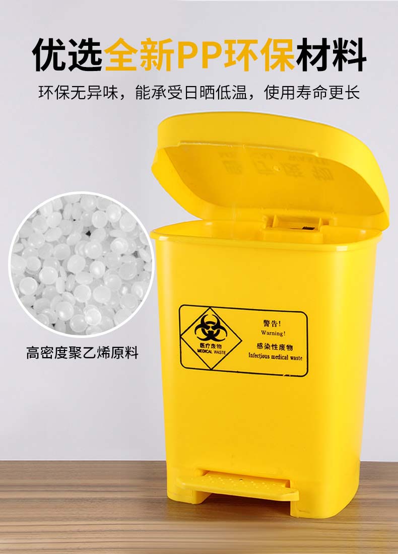 领象 医疗废物垃圾桶医黄色垃圾桶大号带盖脚踏黄色污物桶医疗 垃圾桶商用垃圾桶15L