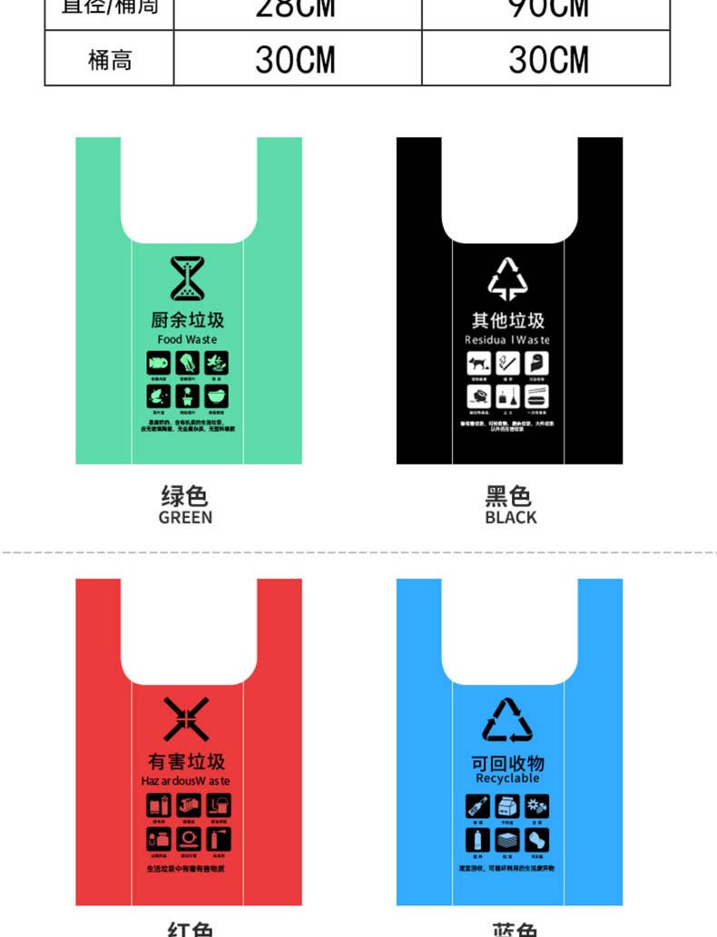 领象 【可降解垃圾分类】手提式垃圾袋加厚医疗商用垃圾袋45*65厨余垃圾20只/卷 绿色