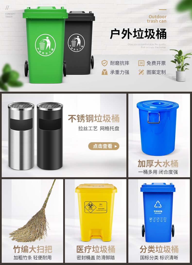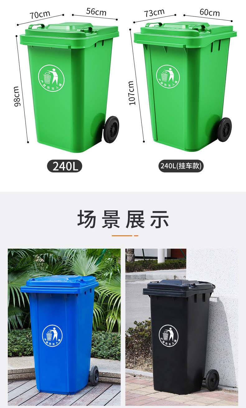 领象 大垃圾桶大号户外环卫加厚物业小区室外环保分类塑料带盖翻盖垃圾桶箱酒店大号商用绿色240L