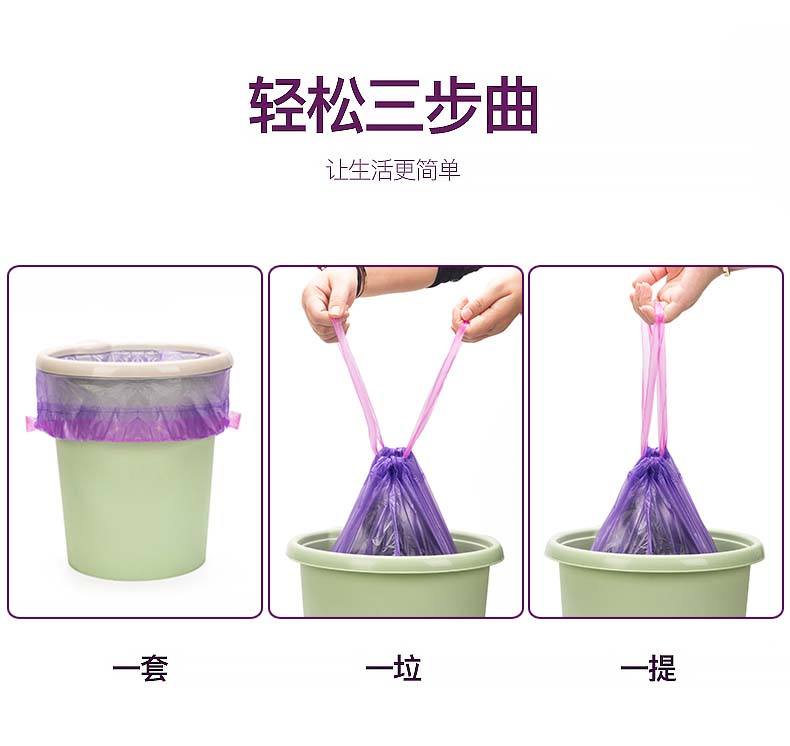 美家日记 抽绳自动收口降解垃圾袋 加厚手提式45cm*50cm*5卷 干湿垃圾分类