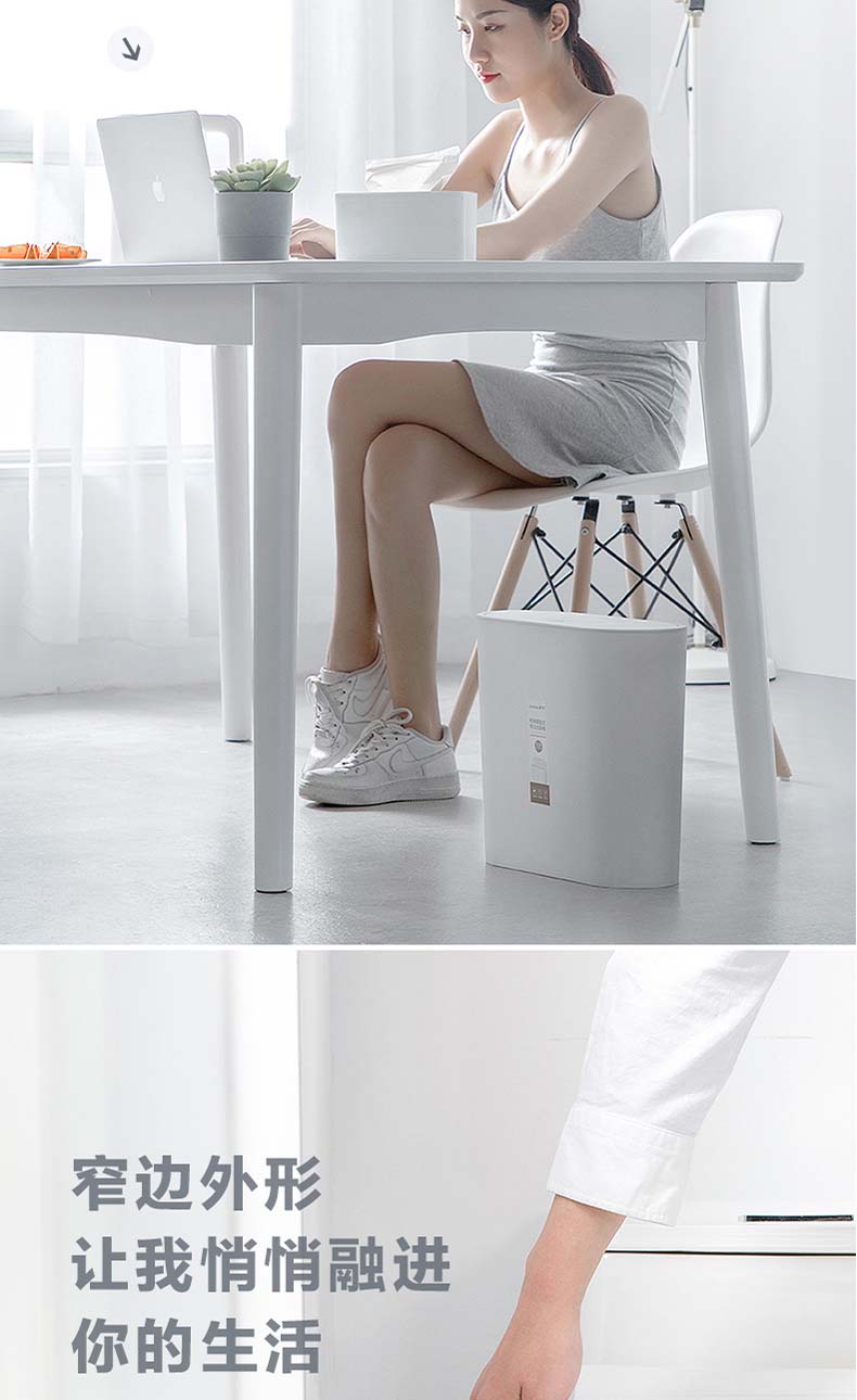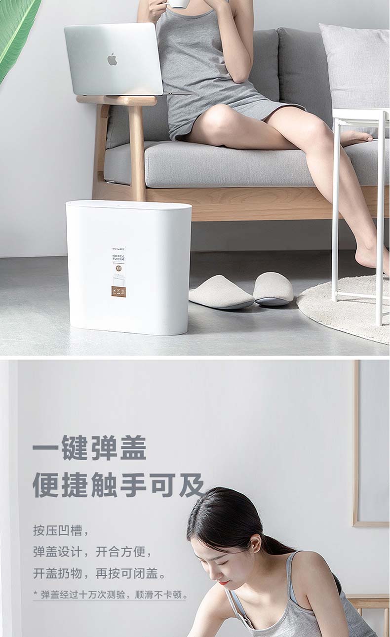 茶花 垃圾桶柯琳按压弹盖式大号带盖厨房办公室纸篓204003