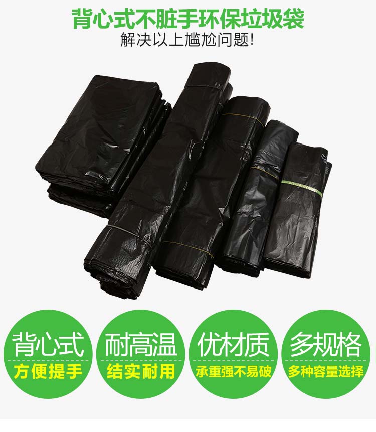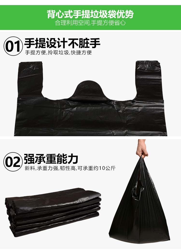 舒蔻酒店物业环保户外手提式黑色加厚大号垃圾袋黑色塑料袋40*62cm35个