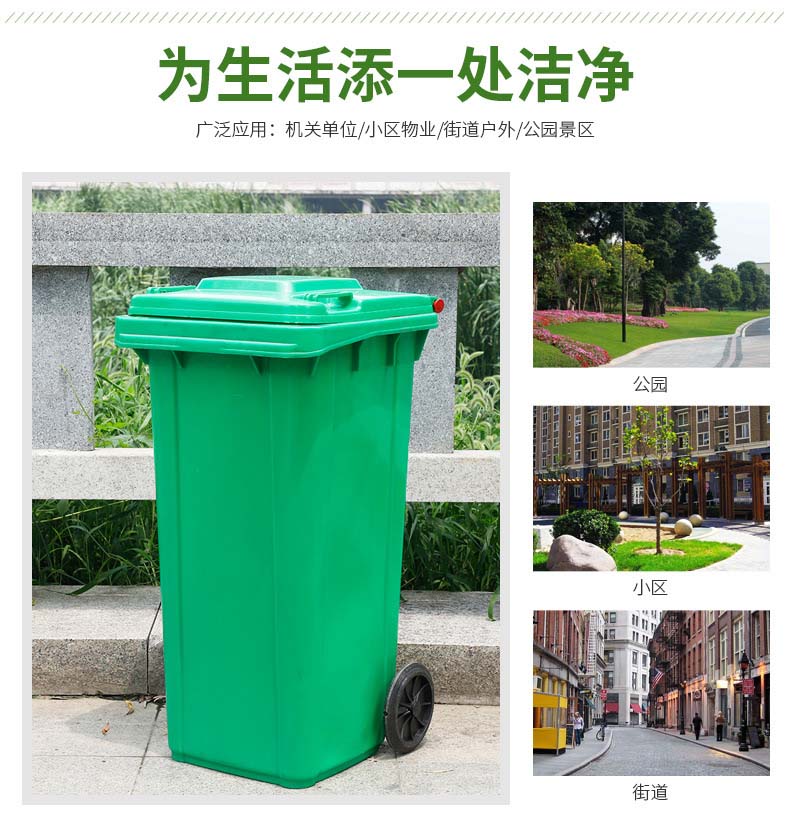 巨成云 加厚垃圾桶物业小区公用室外环保分类塑料带盖医疗环卫户外垃圾桶酒店 大号带轮240L 一个价 可定制