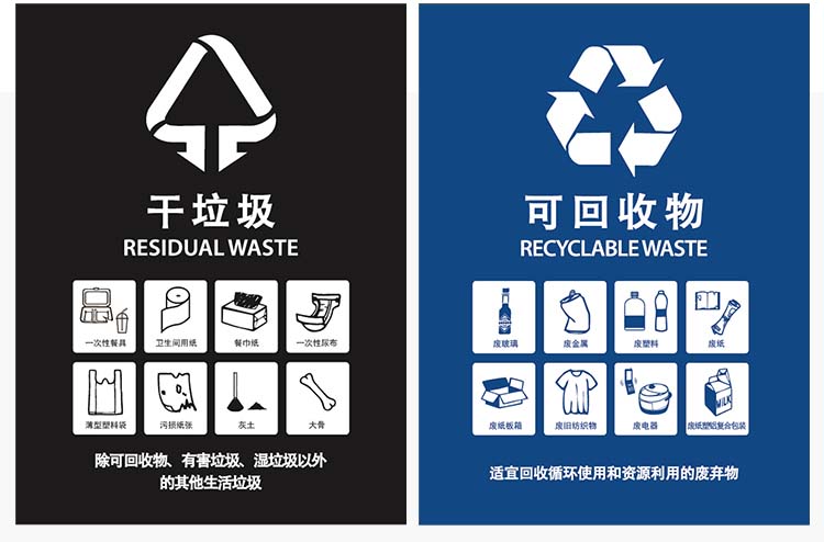 科力邦(Kelibang) 垃圾桶分类标识不干胶贴 干湿分类标签贴纸厨余有害标志贴30*40cm KBT004 可回收