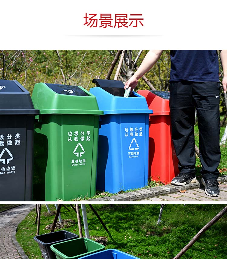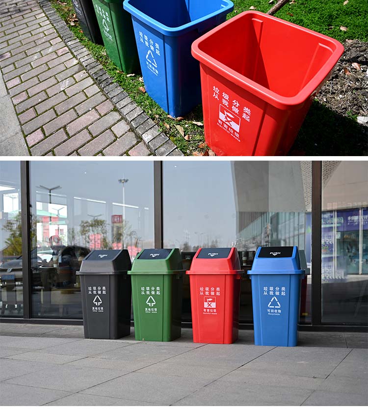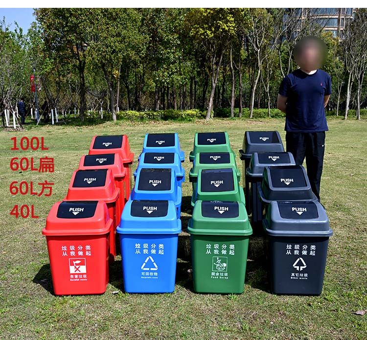 中典 四色分类垃圾桶60L-A带盖大号黑色其他垃圾公共场合商用户外环卫桶60L摇盖桶