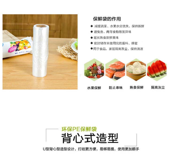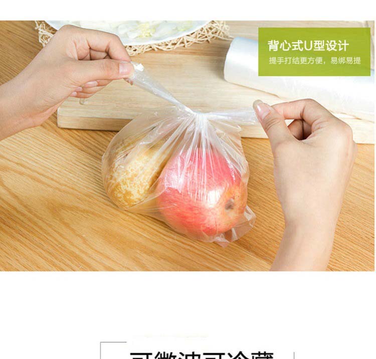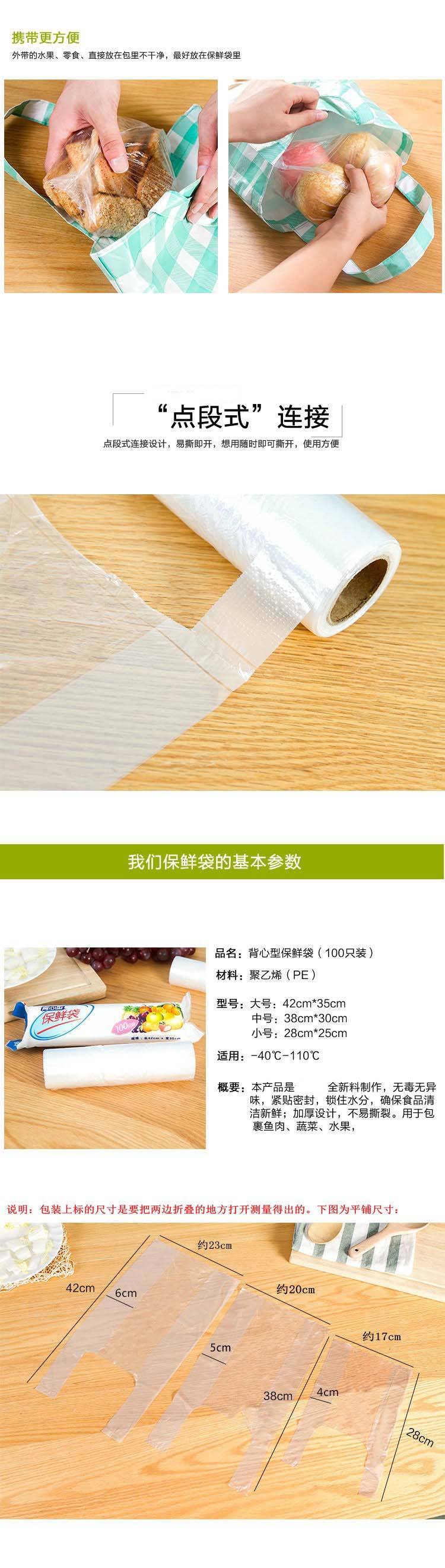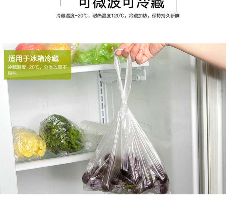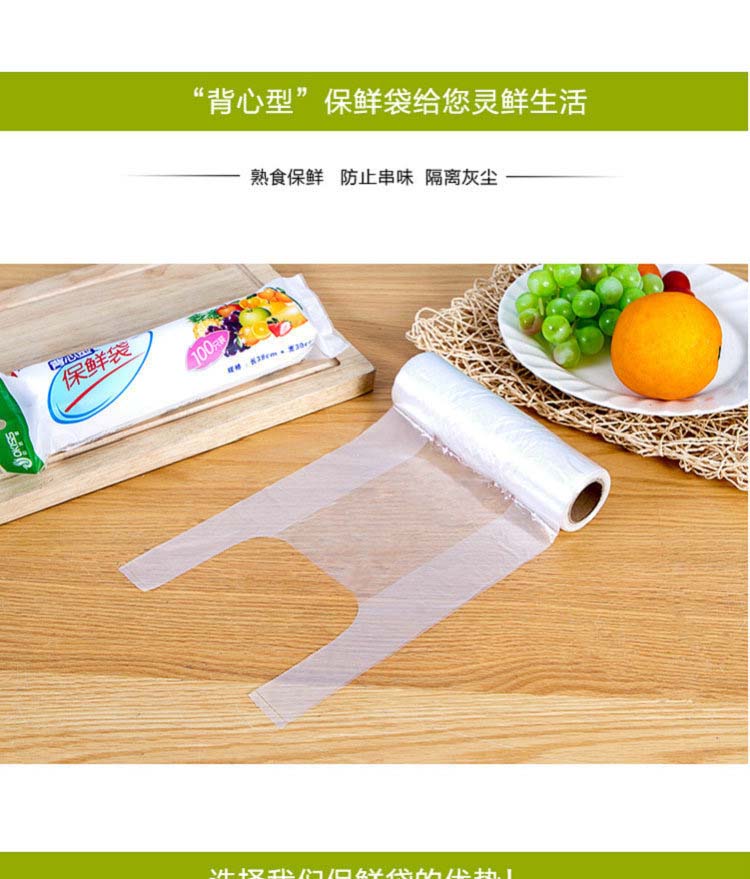 劳保佳 保鲜袋 PE背心保鲜袋 手提冷冻密封袋 现货蔬菜包装袋居家收纳袋 小号25*28cm 1卷装 100支/卷