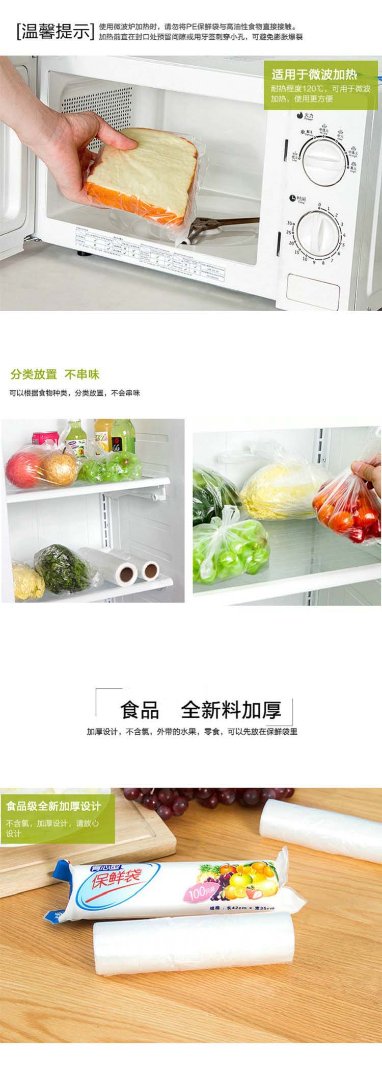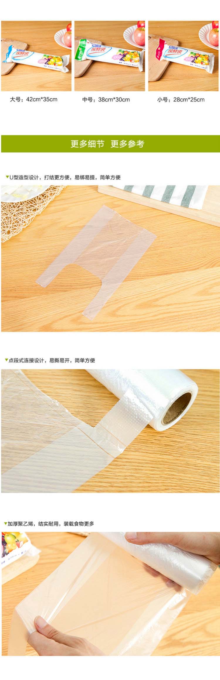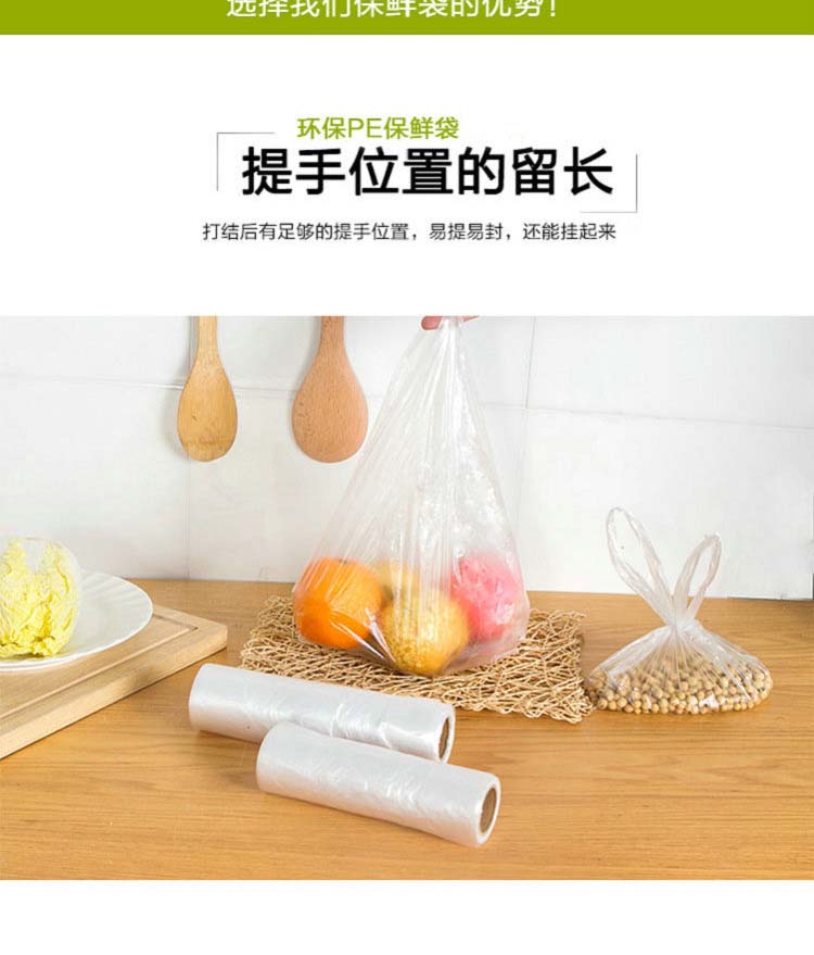 劳保佳 保鲜袋 PE背心保鲜袋 手提冷冻密封袋 现货蔬菜包装袋居家收纳袋 小号25*28cm 1卷装 100支/卷