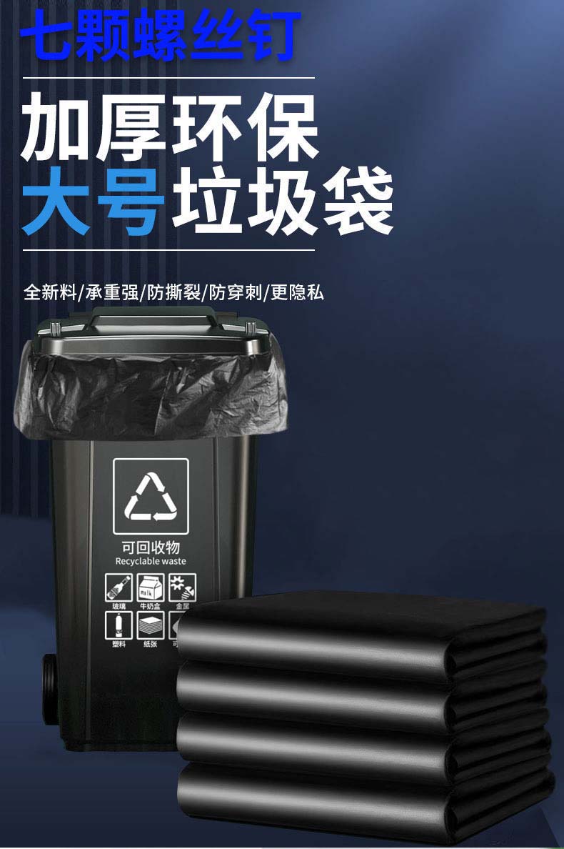 七颗螺丝钉 加厚垃圾袋60CM*80CM大容量居家办公室垃圾袋塑料袋 平口款商用工业小区专用黑色塑料袋100个