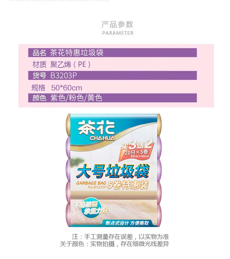 茶花垃圾袋加厚100只中大号50*60cm分类厨余厨房清洁袋垃圾桶方便收纳袋 B3203P