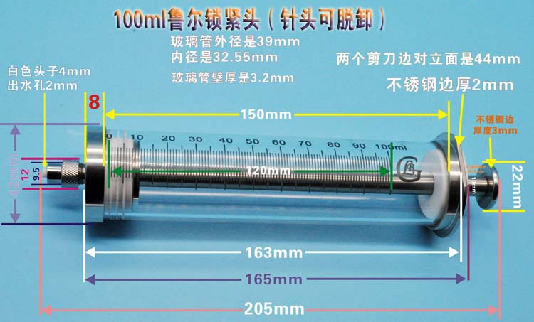 商品名称:100ml微量注射器微量进样器高精度微量进样器高硼硅特氟龙活塞微量注射器100毫升