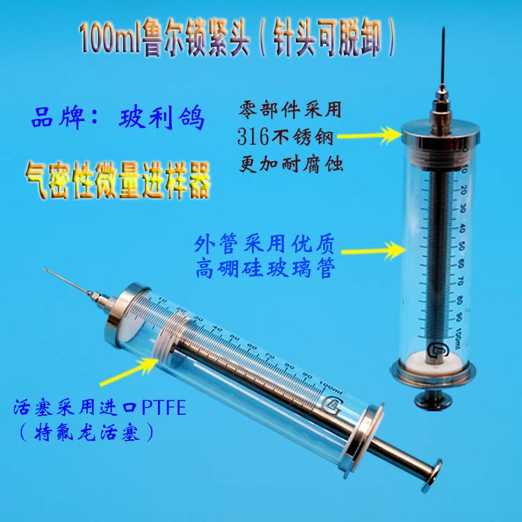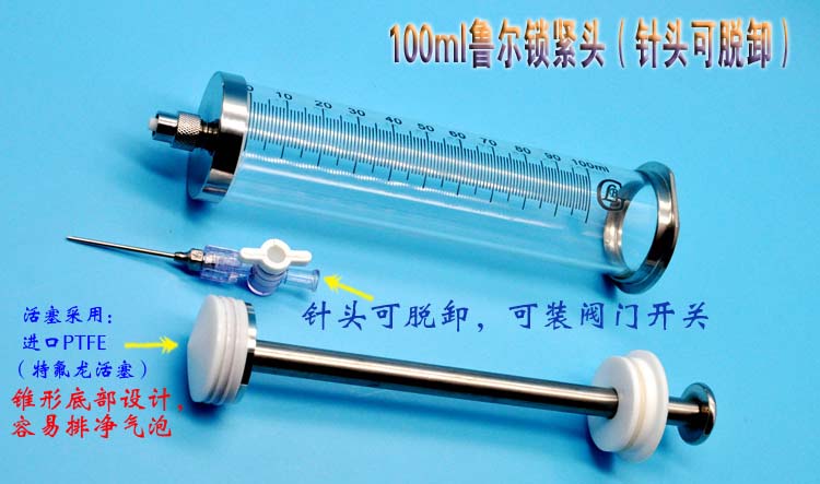 100ml微量注射器微量进样器高精度微量进样器高硼硅特氟龙活塞微量注射器100毫升