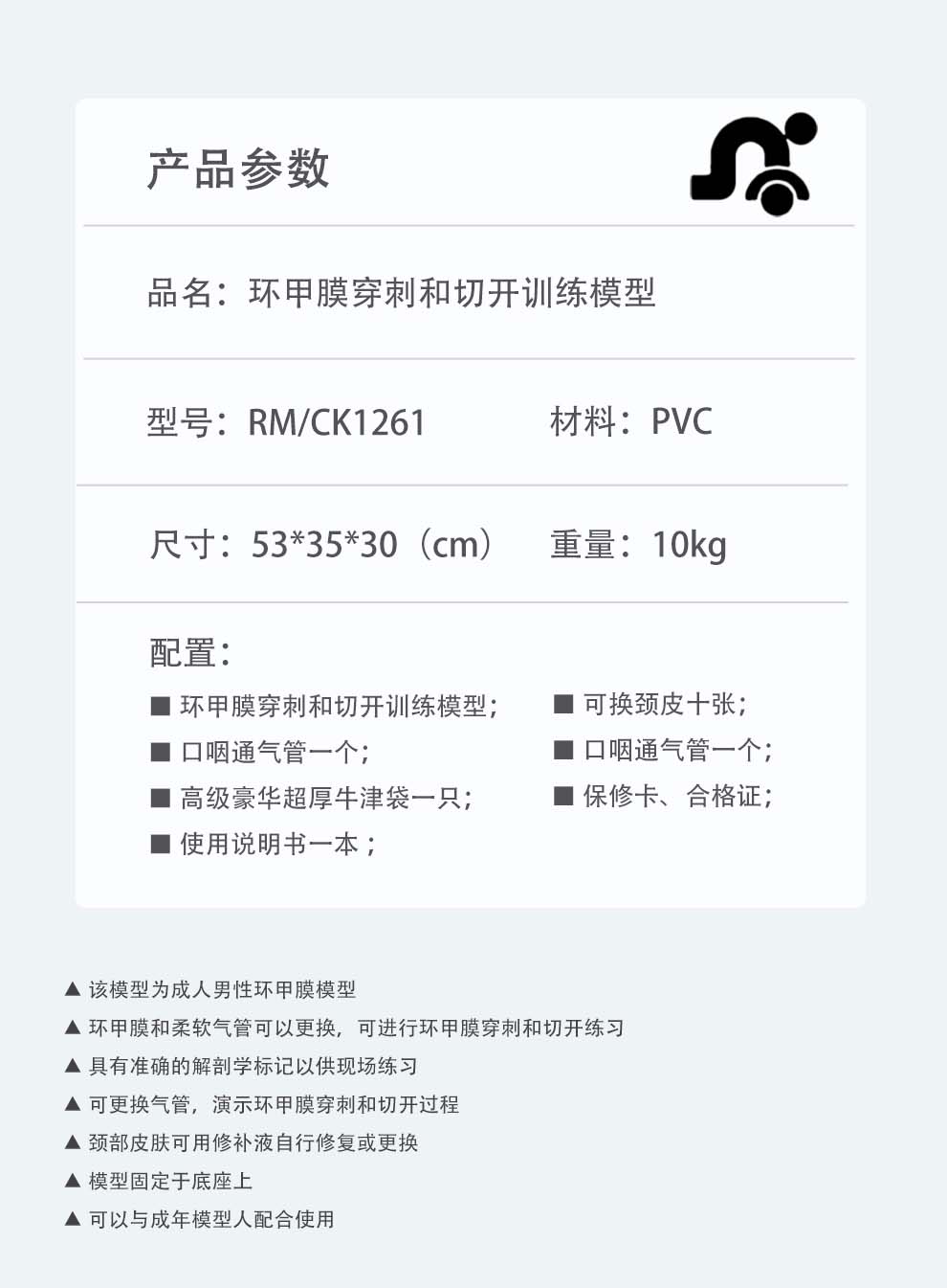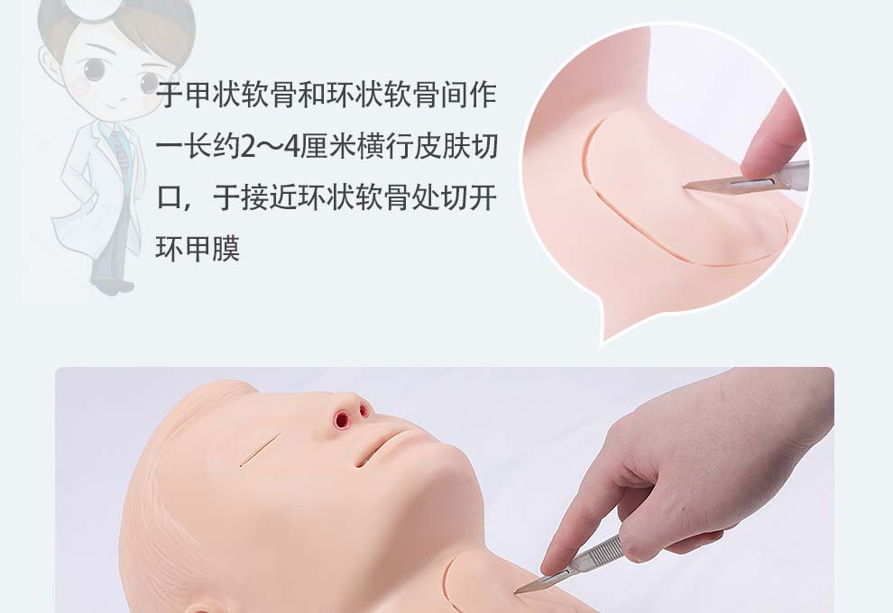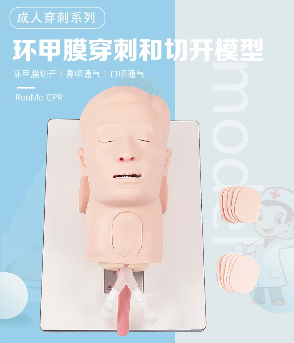 仁模RM/CK1261环甲膜穿刺和切开训练仿真模型成人男性环甲膜可更换可以插鼻咽通气管
