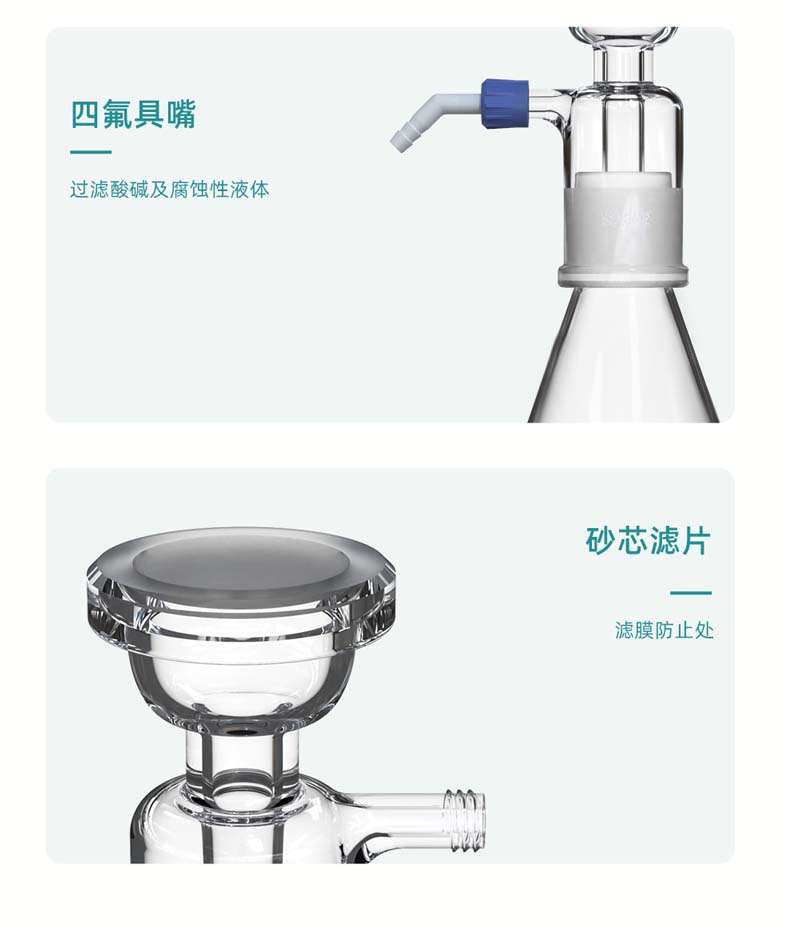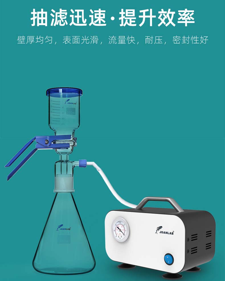 群安仪器 JOANLAB 实验室真空抽滤装置1000ml溶剂过滤器真空抽滤瓶玻璃砂芯过滤装置 1L过滤装置
