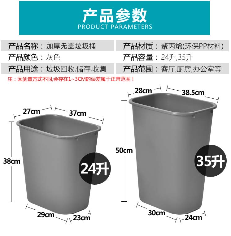商品名称:厨房垃圾桶客厅卧室特大号大容量工业餐厅商用无盖垃圾筒 24升(加厚款)