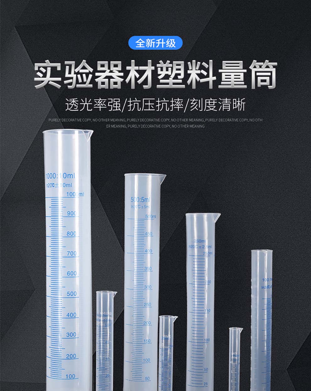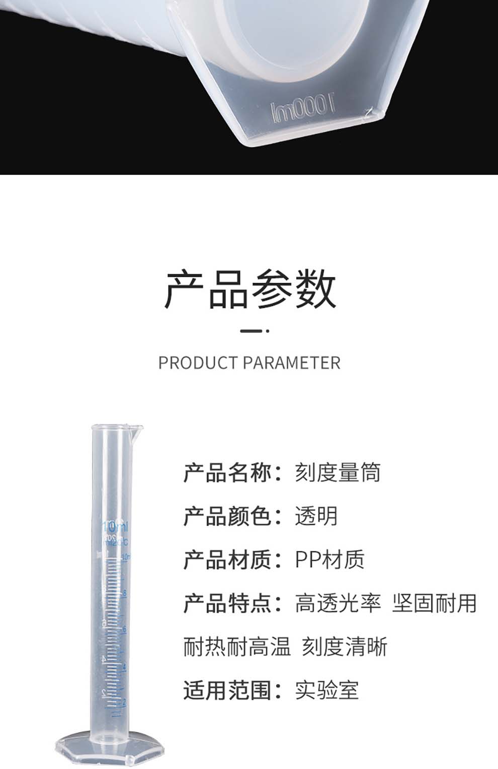虎勒蓝色刻度塑料量筒毫升量杯分装实验室量桶液体测量pp耐酸碱 50mL