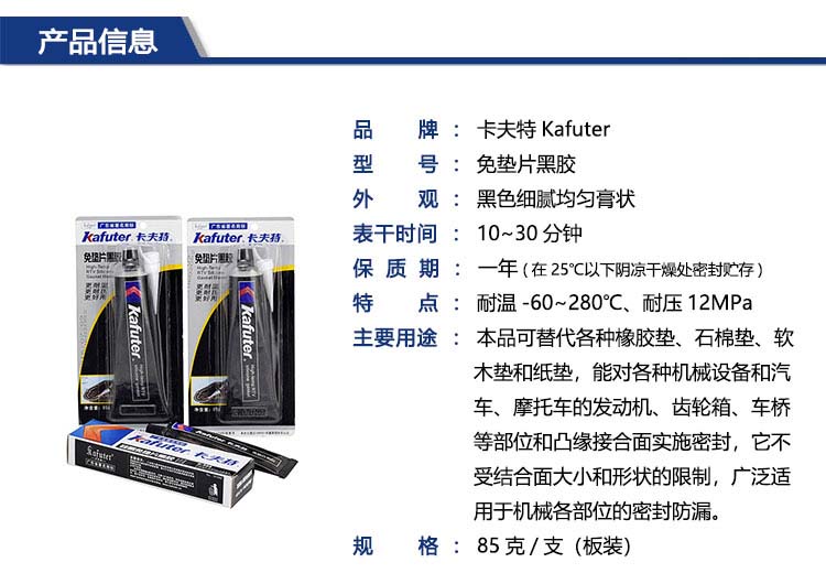 卡夫特 kafuter 硅酮免垫片黑胶 汽车维修密封胶K-586升级版